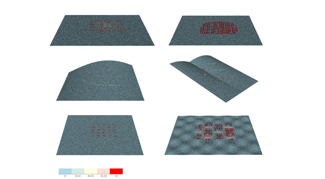 The performances of CVP and IDW (Shepard) are evaluated qualitatively by visually comparing the estimated DEMs against the expected landscape. An error map is also generated to show the distribution of the error for each landscape. Quantitatively, the following error test statistics were calculated and compared for each combination of terrain and canopy type: